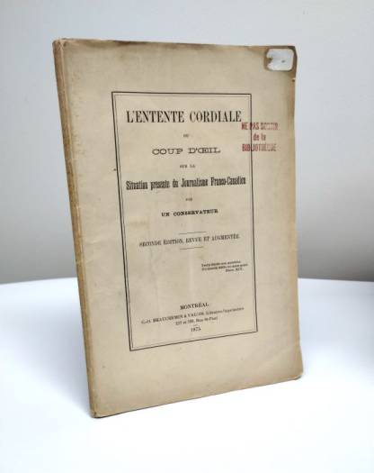 M., C. O. Beauchemin et Valois, 1875. xxvii, (1)-54 p., 22,5 cm., Br. (un cachet et une petite étiquette sur couv. sup., autrement en très bon état).