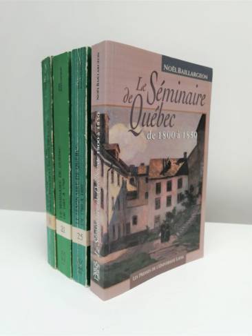 Série complète des 4 volumes constituant l'histoire de cette institution. Intéressant pour la compréhension de l'évolution du Séminaire à travers les époques, Les 3 premiers volumes ont été publiés dans la collection des « Cahiers de l'Institut d'histoire de l'Université Laval » (nos. 18, 21, et 25). L'auteur enseignait l'histoire et la géographie au Séminaire.