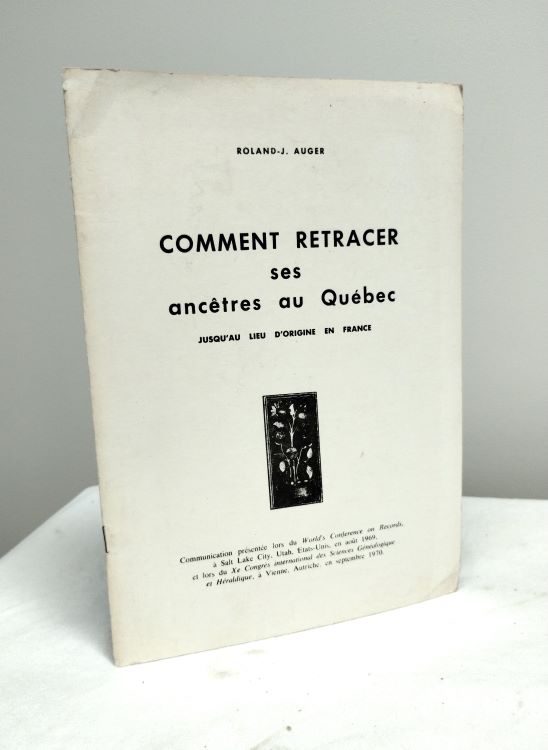 Comment retracer ses ancêtres au Québec jusqu'au lieu d'origine en France : comunication présentée lors du World's Conference on Records, à Salt Lake City, Utah, Etat-Unis, en août 1969, et lors du Xe Congrès international des Sciences Généalogique et Héraldique, à Vienne, Autriche, en septembre 1970