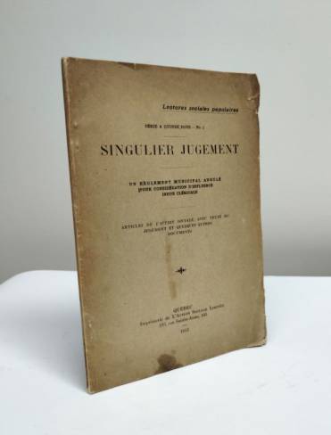 L'Eglise et la société civile, les caractères sociaux de l'Eglise, le gouvernement de l'Eglise et ses pouvoirs, l'union ou la séparation de l'Eglise et de l'Etat, les hérésies, la société moderne, les concordats. Oeuvre importante de ce théologien qui fut directeur du Grand Séminaire de Québec. Très bel exemplaire.