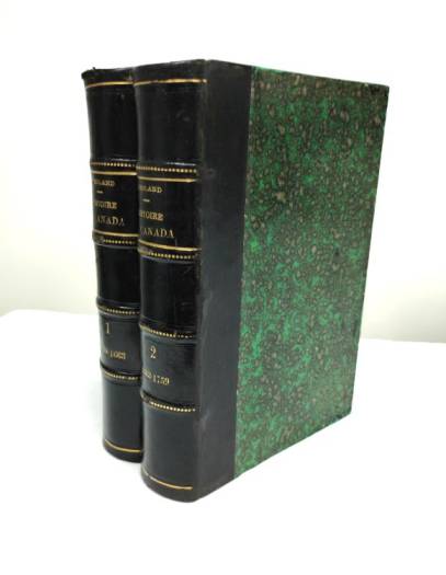 Edition originale rare et en très bon état. Sans les 2 gravures que l'on ne retrouve que dans quelques exemplaires (à l'époque cet ouvrage se vendait avec ou sans ces gravures). Ce manuel d'histoire de la Nouvelle-France, est un « ouvrage de base... (qui) se distingue par une bonne documentation, une présentation lucide et une composition bien ordonnée » (Lanctôt). « Ferland écrit dans un style qui contraste avec celui des historiens de son temps. Chez lui la raison du savant l'emporte presque toujours sur la rhétorique patriotarde ... Les dernières lignes du second tome laissent difficilement imaginer qu'on est rendu au terme d'un ouvrage somme toute magistral » (S. Gagnon).