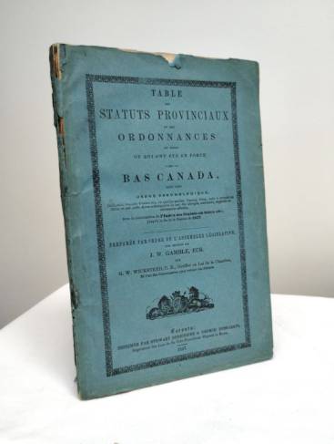 T., Stewart, Derbishire et Desbarats, 1857. iv, 200 p., feuillet d'errata, 25 cm., Br. (couv. impr. très lég. défr., cachet sur p. titre).