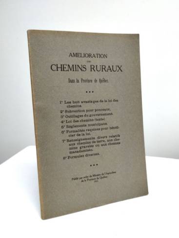 Loi des chemins, avantages de la loi, outillage mis à la disposition des municipalités par le gouvernement, renseignements sur la confection et l'amélioration des chemins. En excellent état.