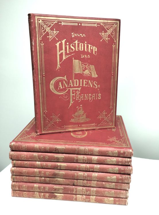 Ensemble bien complet, très solide et en très bel état hormis quelques petits accrocs ou petites taches aux couvertures ou sur certaines pages. Malchelosse, dans son ouvrage sur l'oeuvre de Sulte, écrit à propos de ce titre : « ...l'oeuvre principale de M. Sulte est son « Histoire des Canadiens-Français » (...). L'histoire du Canada étant presque toujours écrite en vue de montrer les actions du gouvernement et des autorités administratives, il était désirable de connaître aussi l'histoire des gouvernés, c'est-à-dire des colons, des humbles cultivateurs, la chair et les muscles du pays ». Oeuvre fortement critiquée à l'époque surtout à cause des opinions qui y sont exprimées sur les rapports de l'Église avec l'État, l'« Histoire des Canadiens-français » n'en demeure pas moins une importante source d'information pour l'histoire canadienne. |